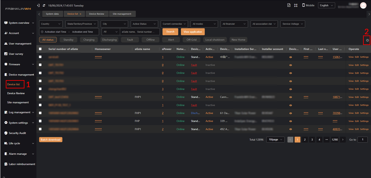 1. Enter the “Device list” Page