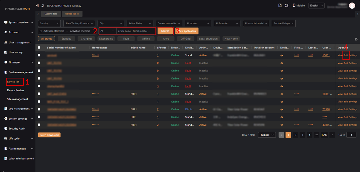 Step 1 : Enter the “device list” page
